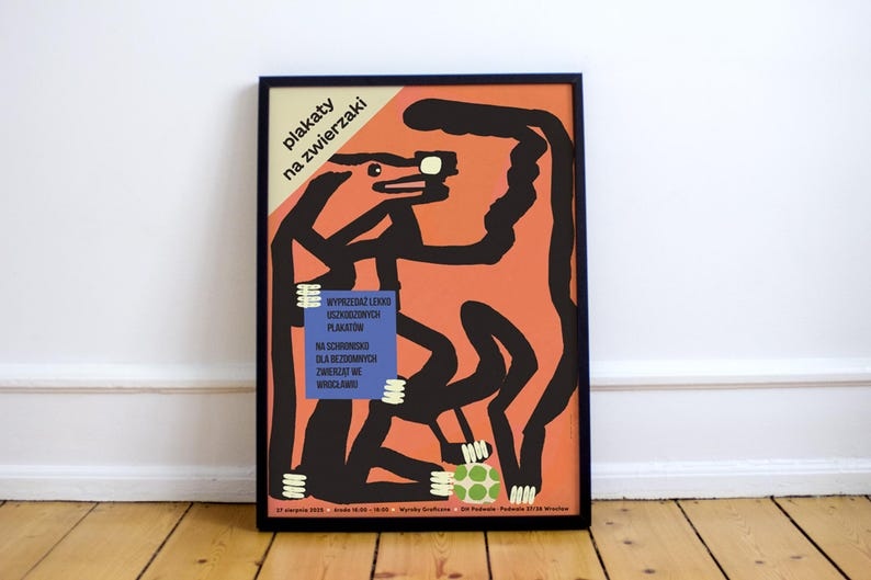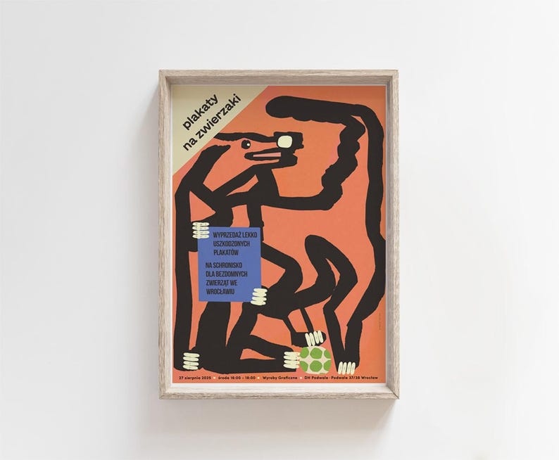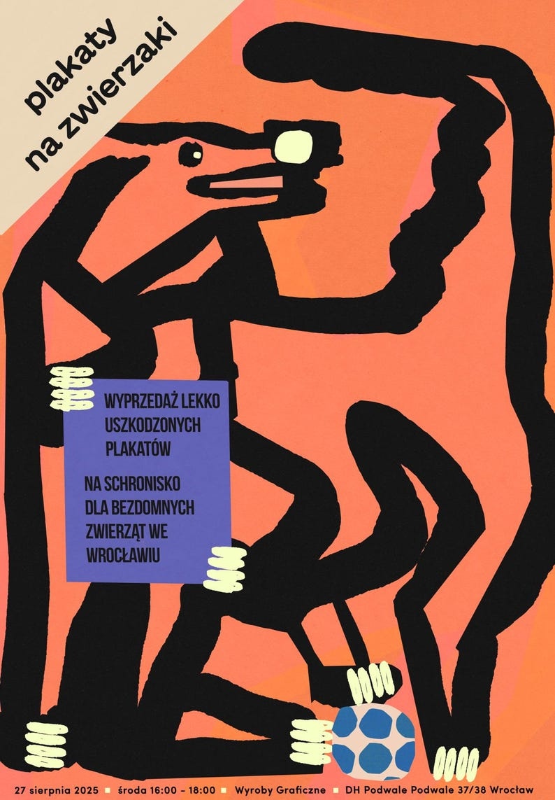 Plakaty na zwierzaki na schronisko, plakat z aukcji charytatywnej, sierpień 2025